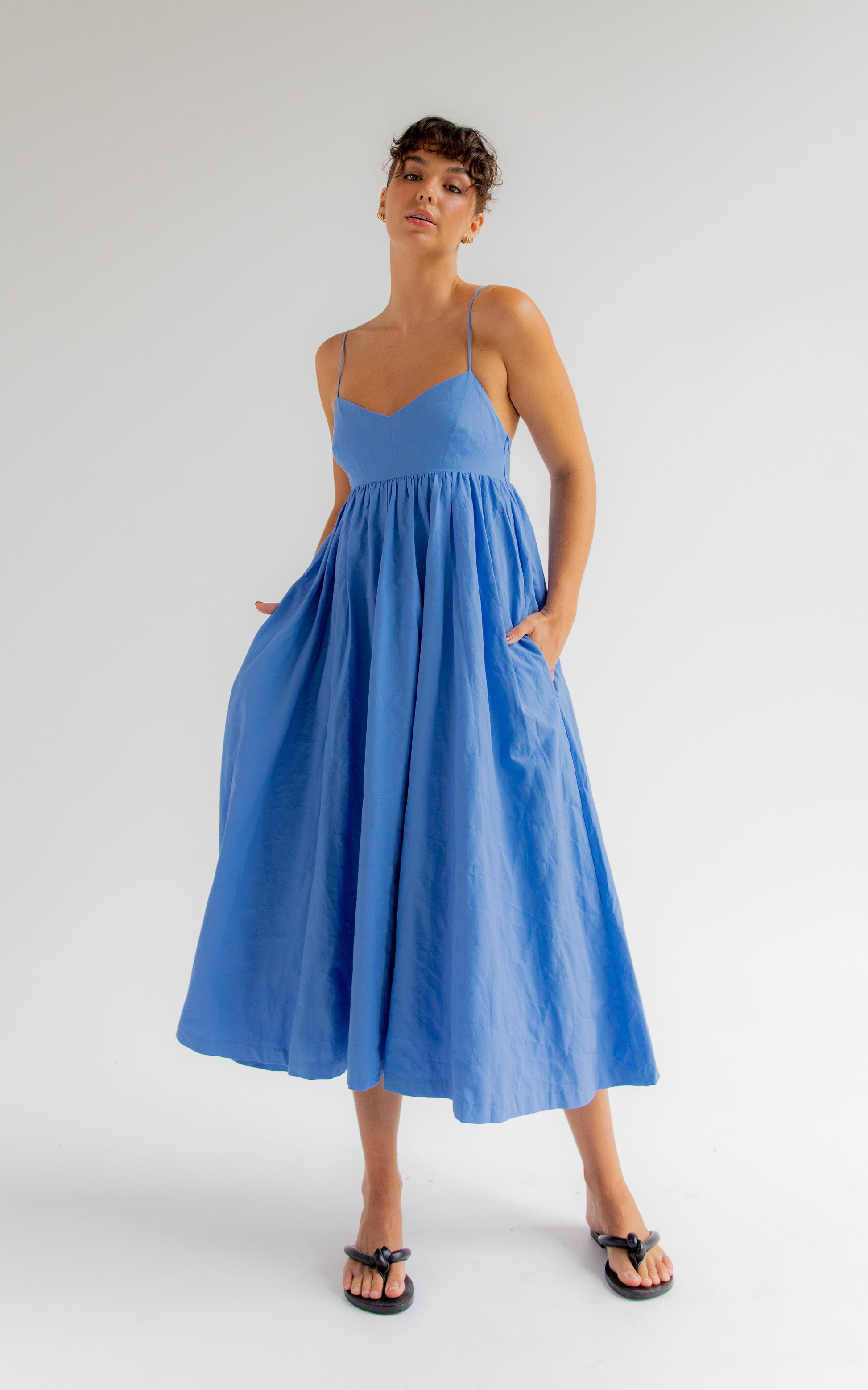 Katie Shirred Bodice Midi Dress Blue This Is Unfolded